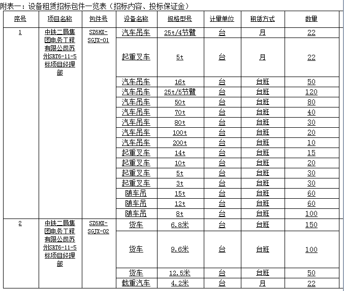 中鐵二局電務(wù)公司蘇州SRT6-11-5標(biāo)項(xiàng)目經(jīng)理部汽車吊租賃招標(biāo)...