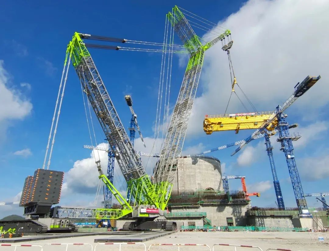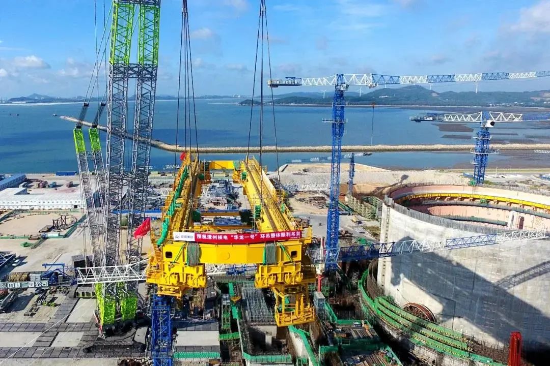 8月24日,由中國核電工程有限公司總承包、中核機械工程有限公司負責吊裝的漳州核電“華龍一號”1號機組環(huán)吊橋架整體吊裝工作圓滿完成。此次吊裝是國內首次核電環(huán)吊橋架整體吊裝,也是中核機械第二臺3200噸履帶吊的首秀,同時開啟了漳州核電“華龍一號”主設備吊裝之